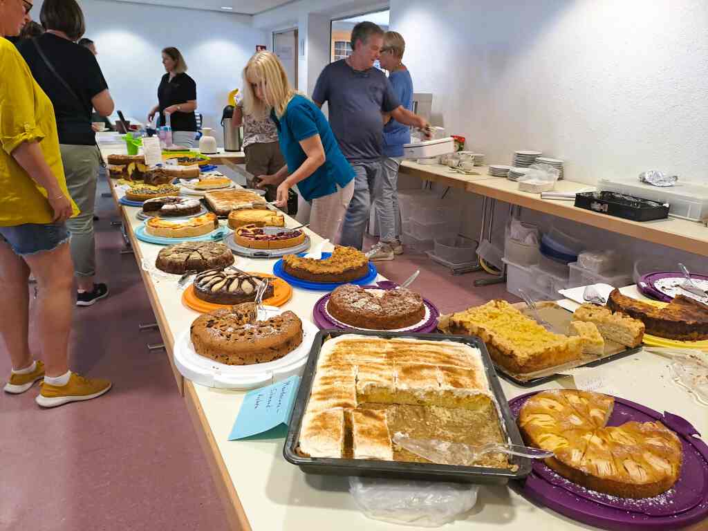 Im Gemeinschaftszentrum lockte ein großes Kuchenbuffet, das von vielen fleißigen Helferinnen und Helfern bestückt worden war. Die Freunde von der Kerbegesellschaft standen am Holzhohle-Grill und grillten leckere Würstchen und Grillkäse. Dazu gab es Kaffee und kühle Getränke, sodass sich die Gäste zwischen Marktbesuch und Flohmarkt-Tour stärken konnten. Die gemütliche Atmosphäre lud zum Verweilen ein, und nicht selten traf man Bekannte oder kam mit Fremden ins Gespräch – ganz im Sinne eines lebendigen Dorffestes.
